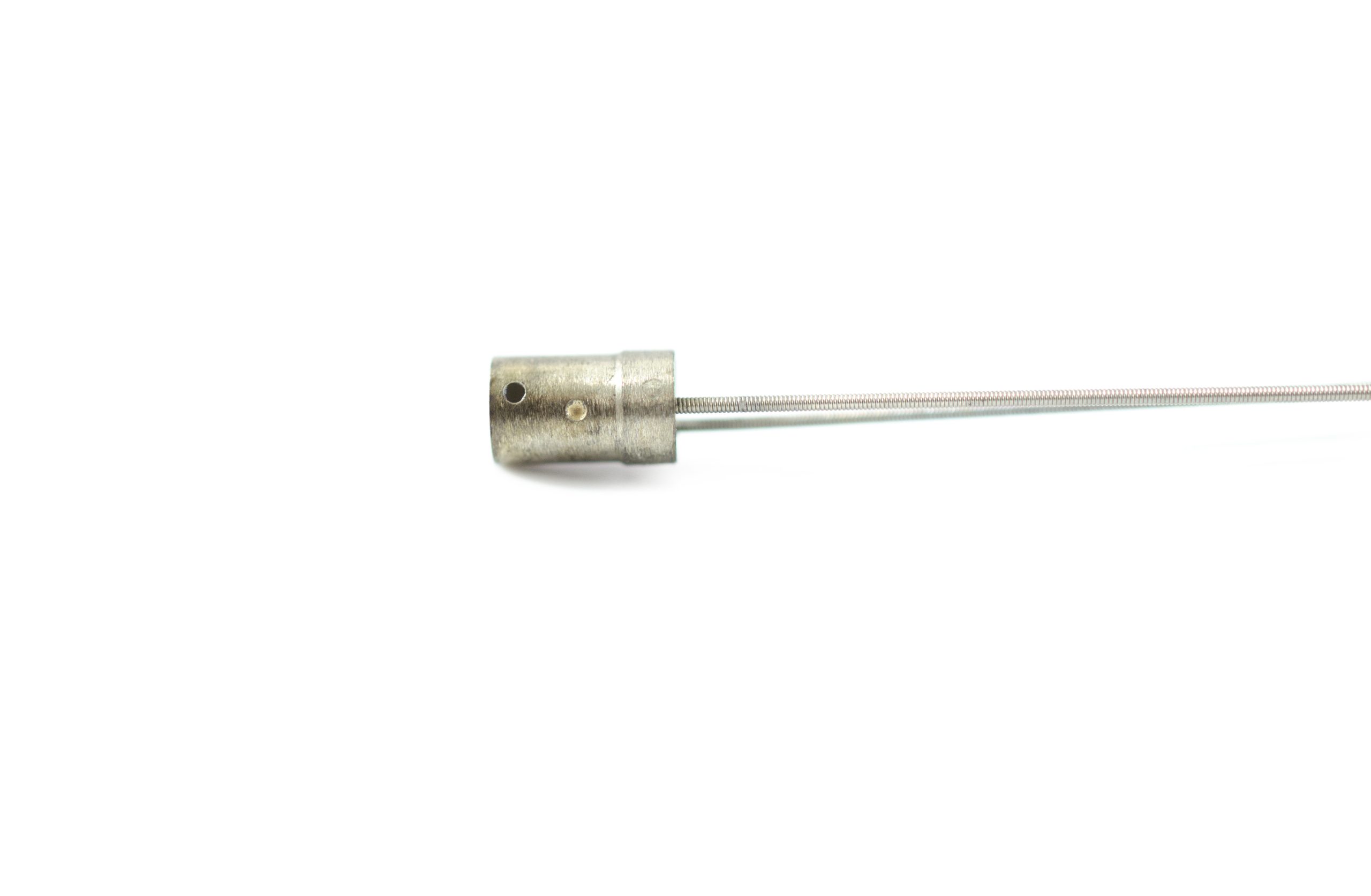 Comes with coil pipe fitting, and coil pipes soldered onto the coil pipe fitting. This part is soldered at the distal end of the insertion tube. This part guides the angulation wires through the insertion tube to the angulation control mechanism in the Upper Control Body Assembly. Includes Coil Pipe Fitting and Coil Pipes.