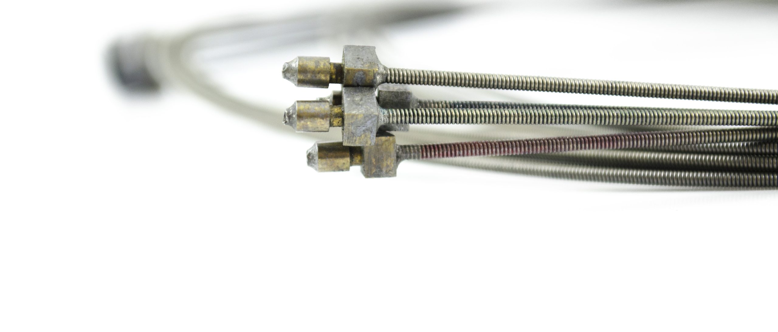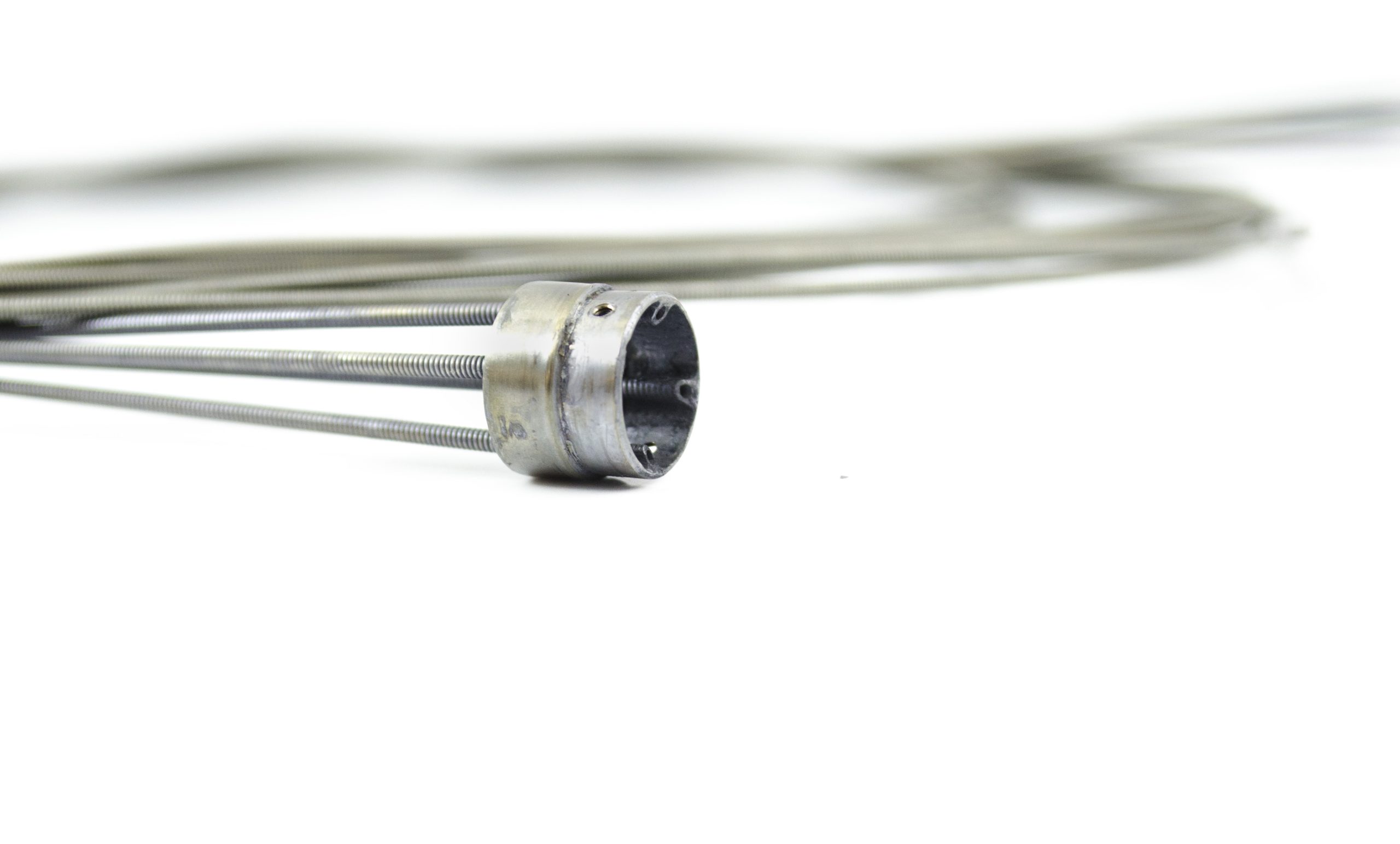 Comes with coil pipe fitting, coil pipes, and stoppers. This part is soldered at the distal end of the insertion tube. This part guides the angulation wires through the insertion tube to the angulation control mechanism in the Upper Control Body Assembly. Includes Coil Pipe Fitting and Coil Pipes.