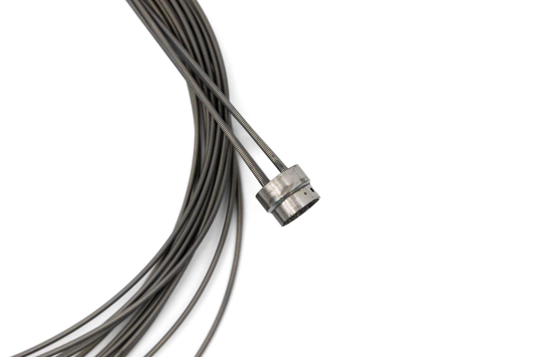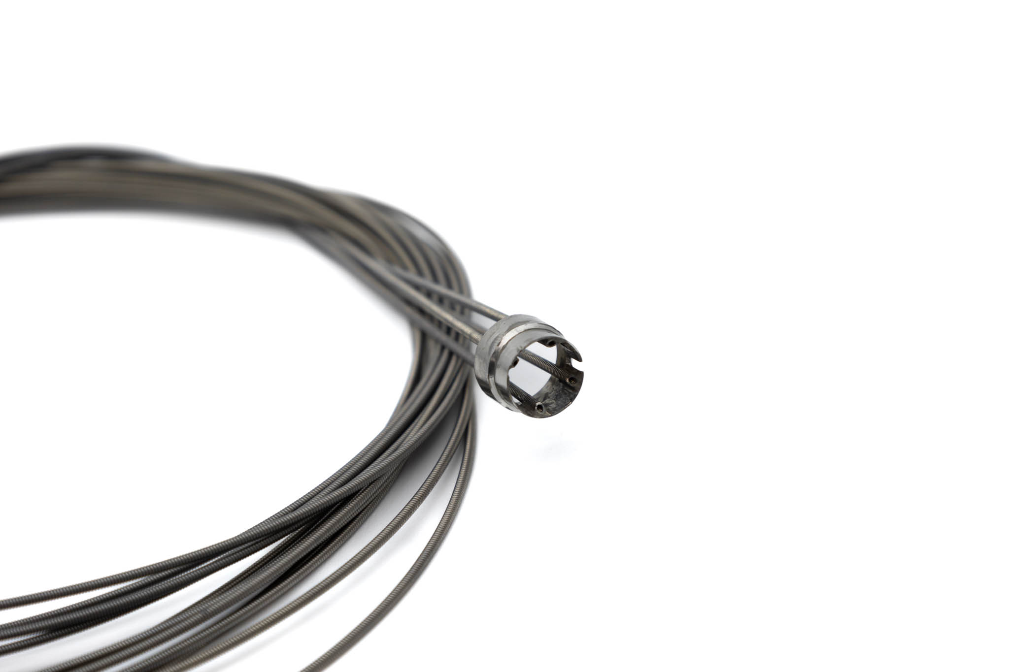 Comes with coil pipe fitting, coil pipes, and stoppers. This part is soldered at the distal end of the insertion tube. This part guides the angulation wires through the insertion tube to the angulation control mechanism in the Upper Control Body Assembly. Includes Coil Pipe Fitting and Coil Pipes.