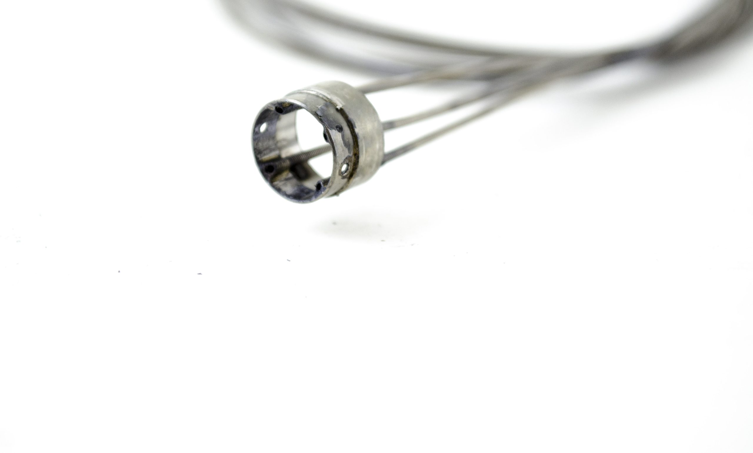 Comes with coil pipe fitting, coil pipes, and stoppers. This part is soldered at the distal end of the insertion tube. This part guides the angulation wires through the insertion tube to the angulation control mechanism in the Upper Control Body Assembly. Includes Coil Pipe Fitting and Coil Pipes.