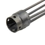 Metal Coil Pipe Fitting that is soldered onto the Distal End of the Insertion Tube. It includes Angulation Wire Guides.