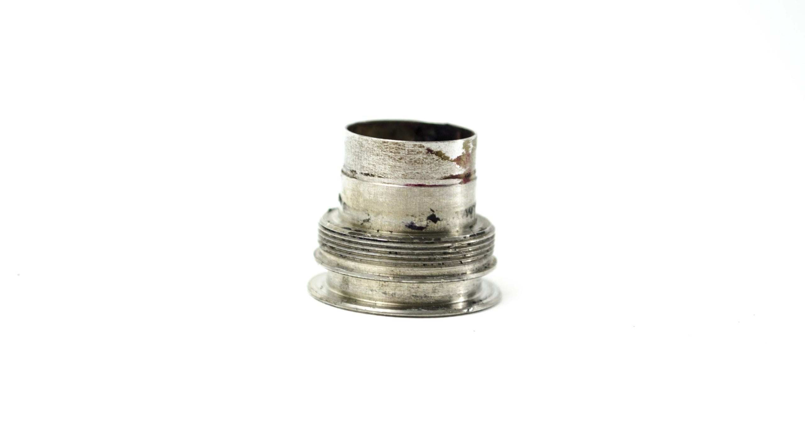 Large Diameter Insertion Tube Proximal End Fitting. This part is glued at the Proximal End of the Insertion Tube. The Large Diameter Insertion Tube Connecting Ring screws onto this part and allows Insertion Tube to Connect to the Upper Control Body Assembly.