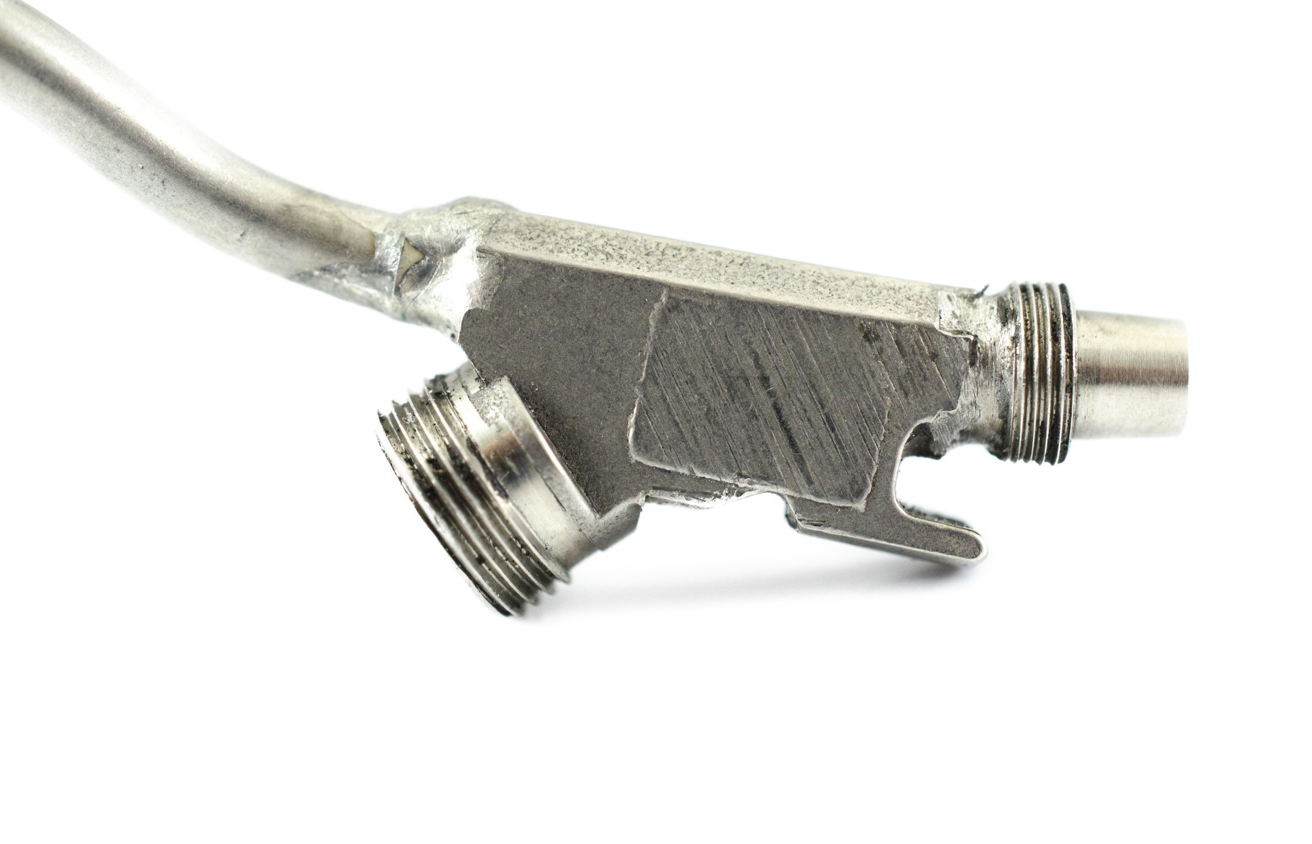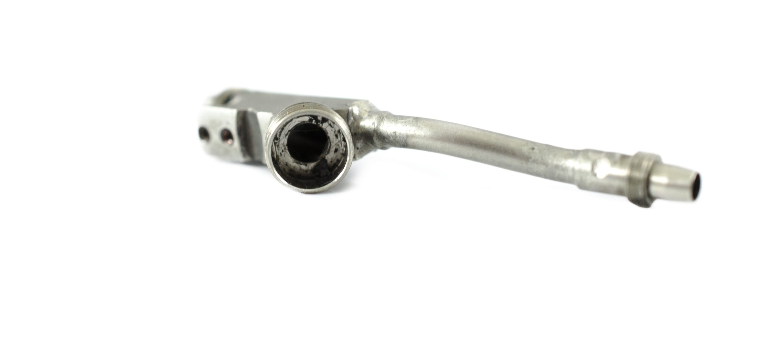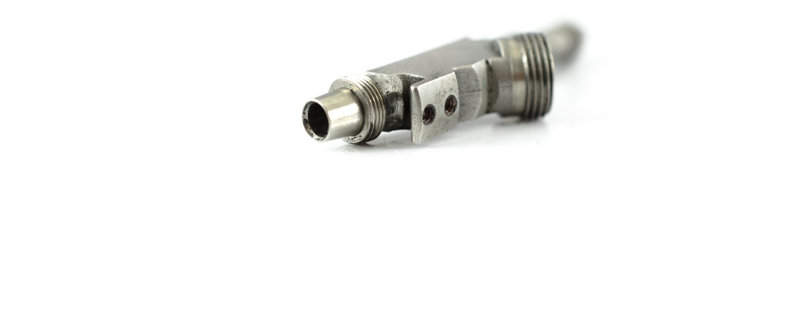 Large Diameter K-Mount. This part screws onto Rear Cylinder. This part has three Threded Open Ends. One End allows for a Biopsy Port Connection. The other two Connect Cylinders within the Upper Control Body Assembly.