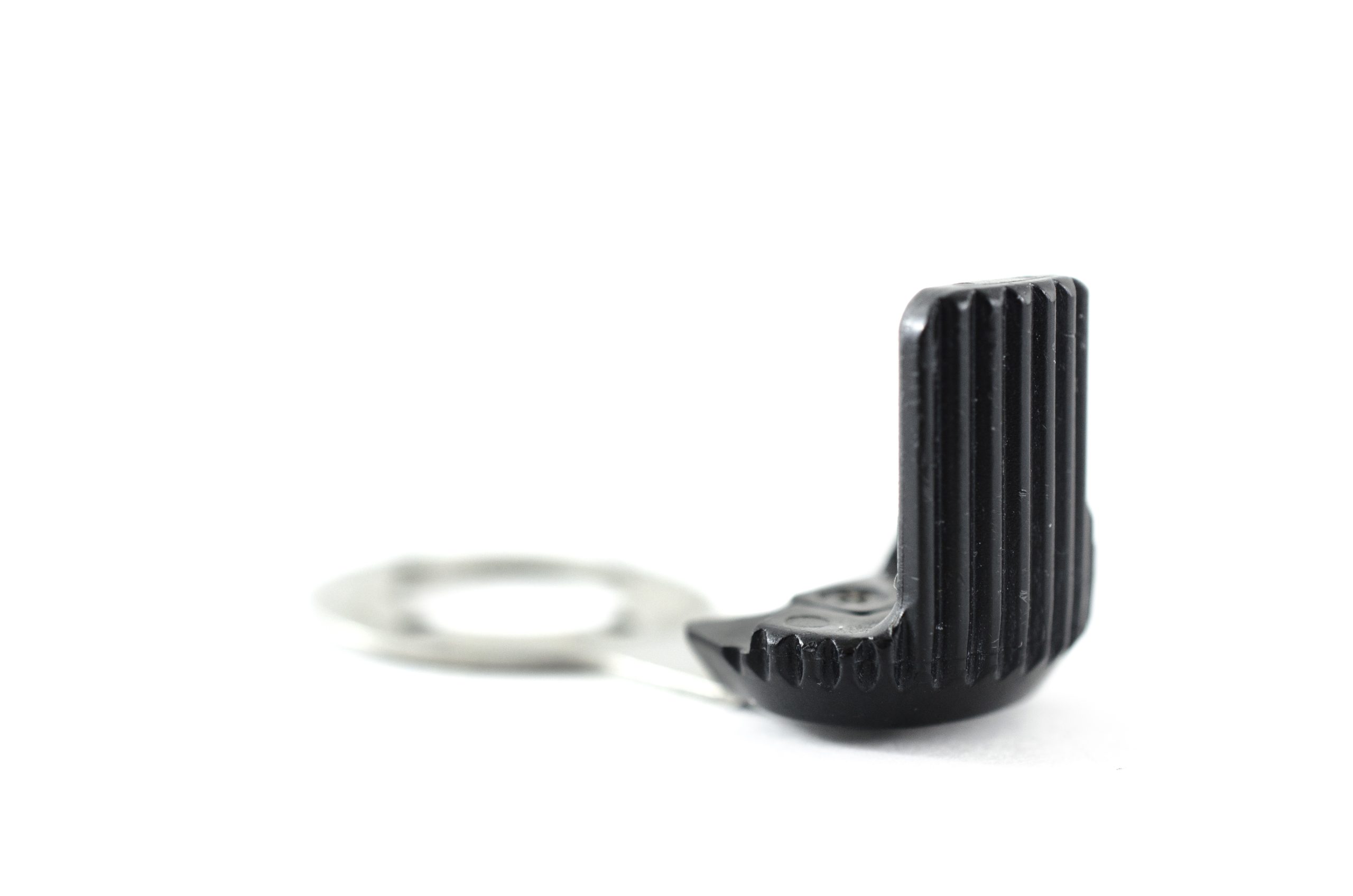 Plastic and Metal Lever for the Elevator fuction of duodenoscopes. This part sits within the control knob assembly mounted closest to the upper control body assembly