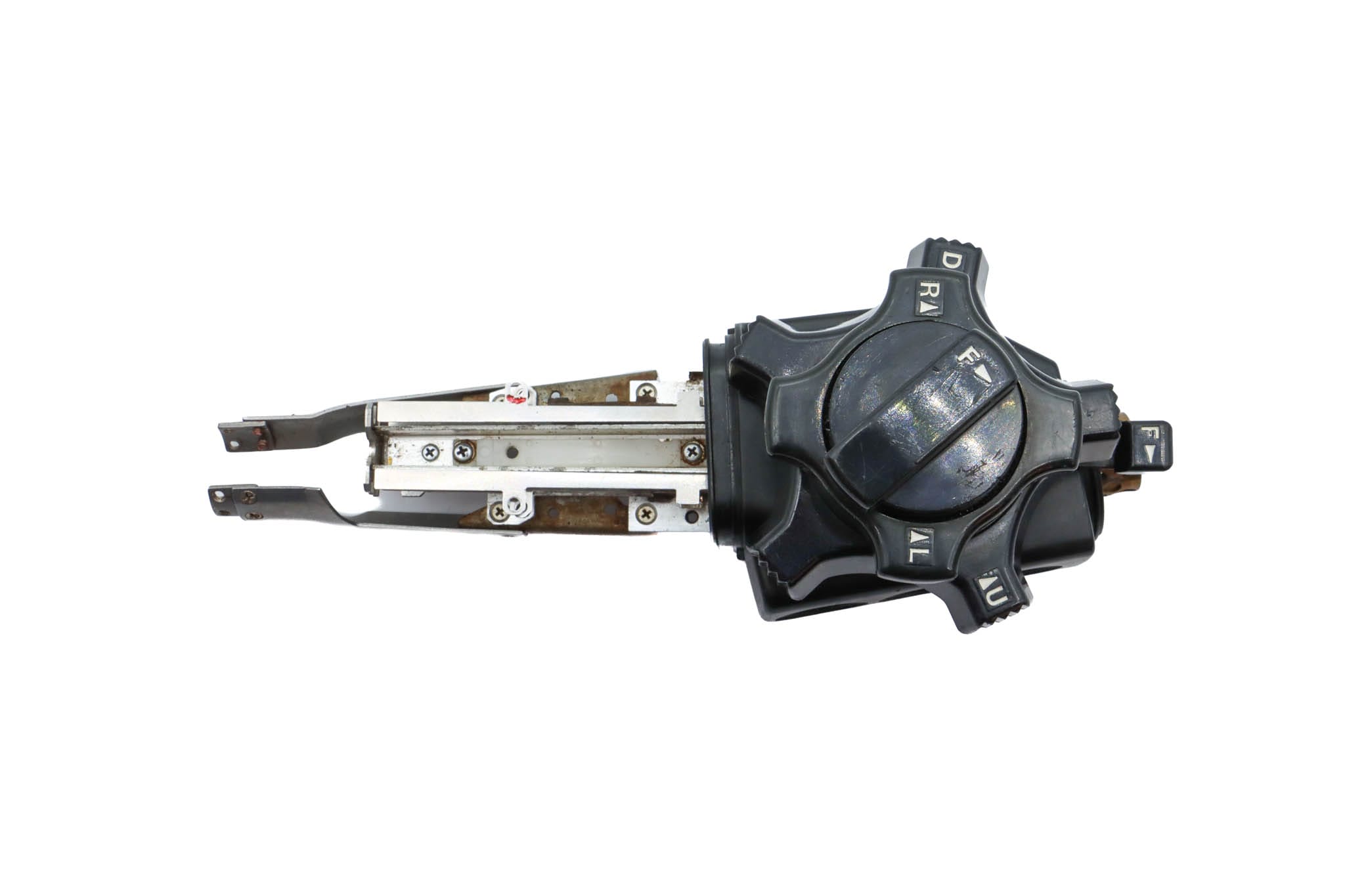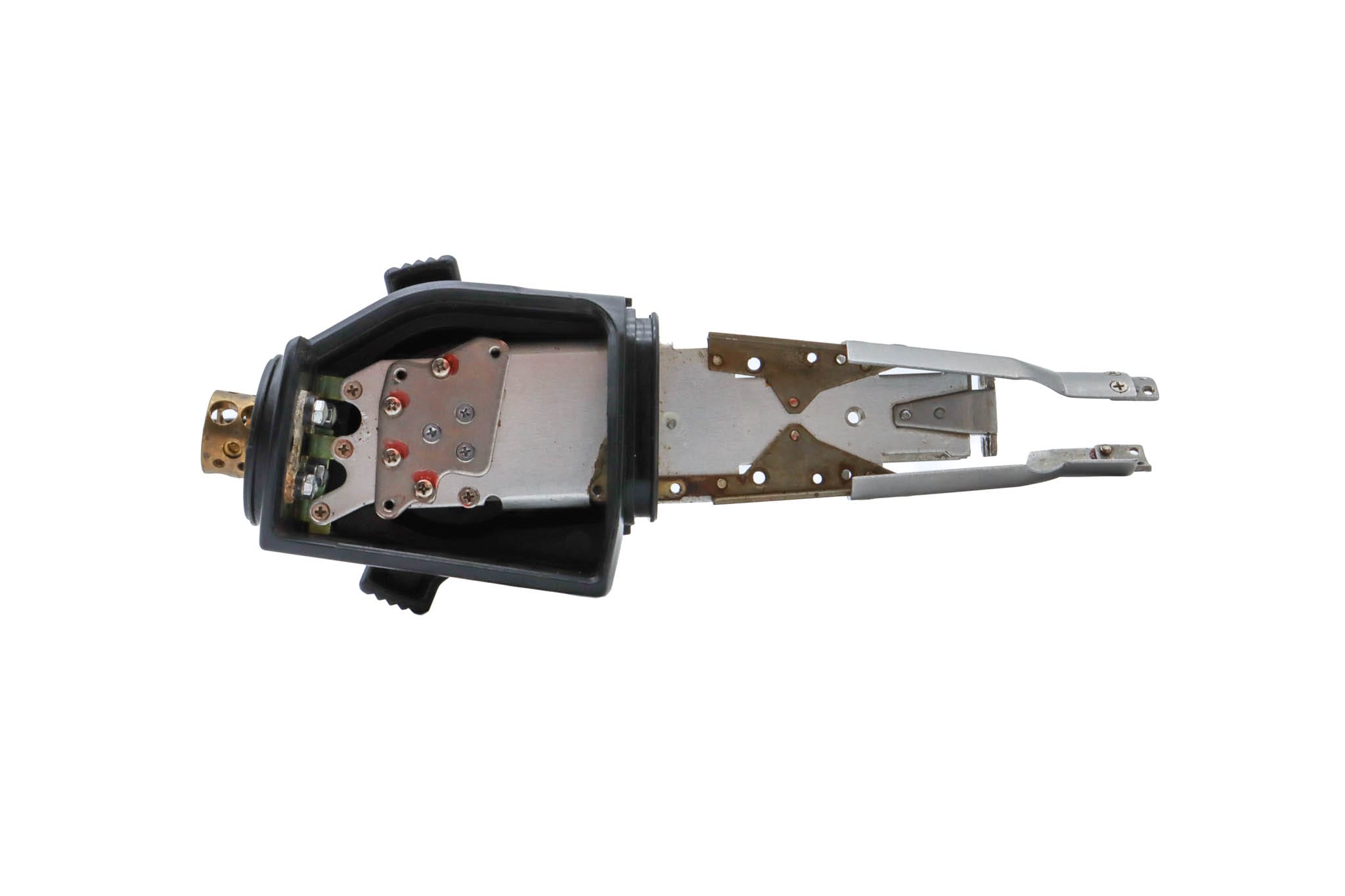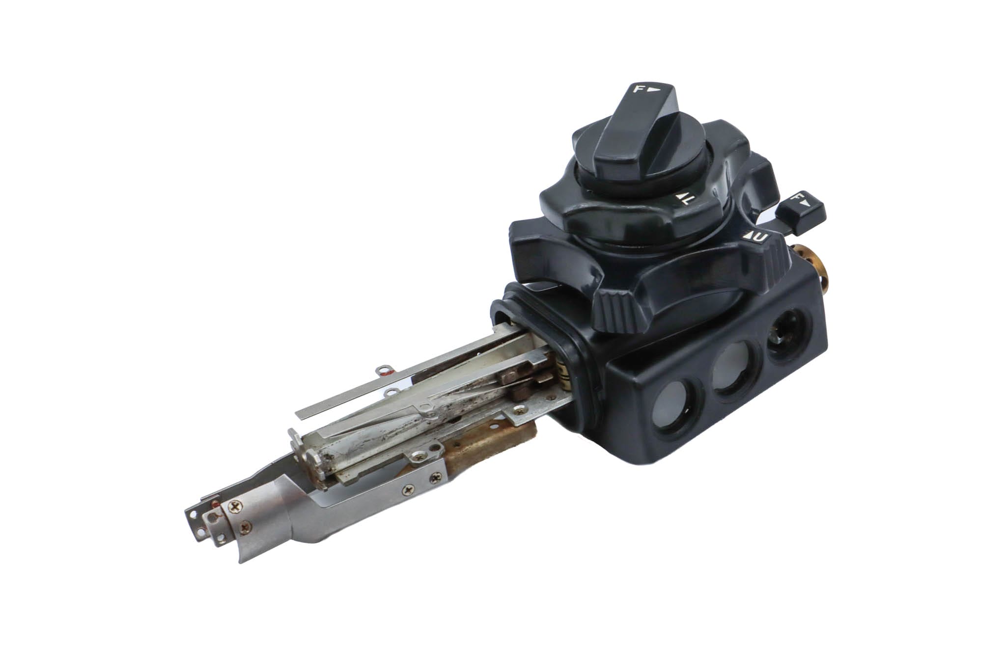 Upper Control Body Assembly. The assembly includes the following: plastic Upper Control Body Housing, metal base plate, white plastic chasis track, Angulation Assembly (Which includes Gears, Chains, Screws, and O-Rings), Up/Down Control Knob with Freeze Knob, Left/Right Control Knob, Freeze Knob Mount, Freeze Knob Mount Stopper, Freeze Knob Cover, and Freeze Control Knob. The Assembly has Never been Disassembled.