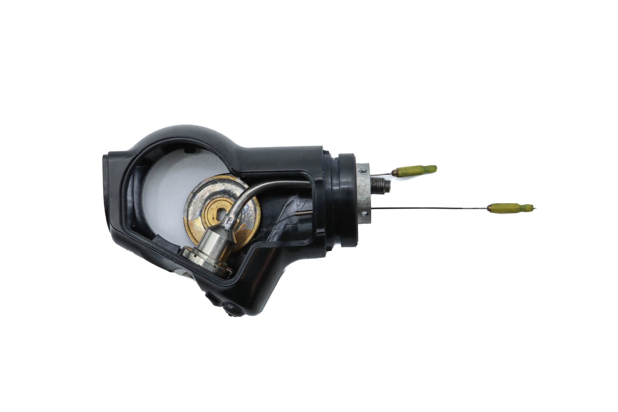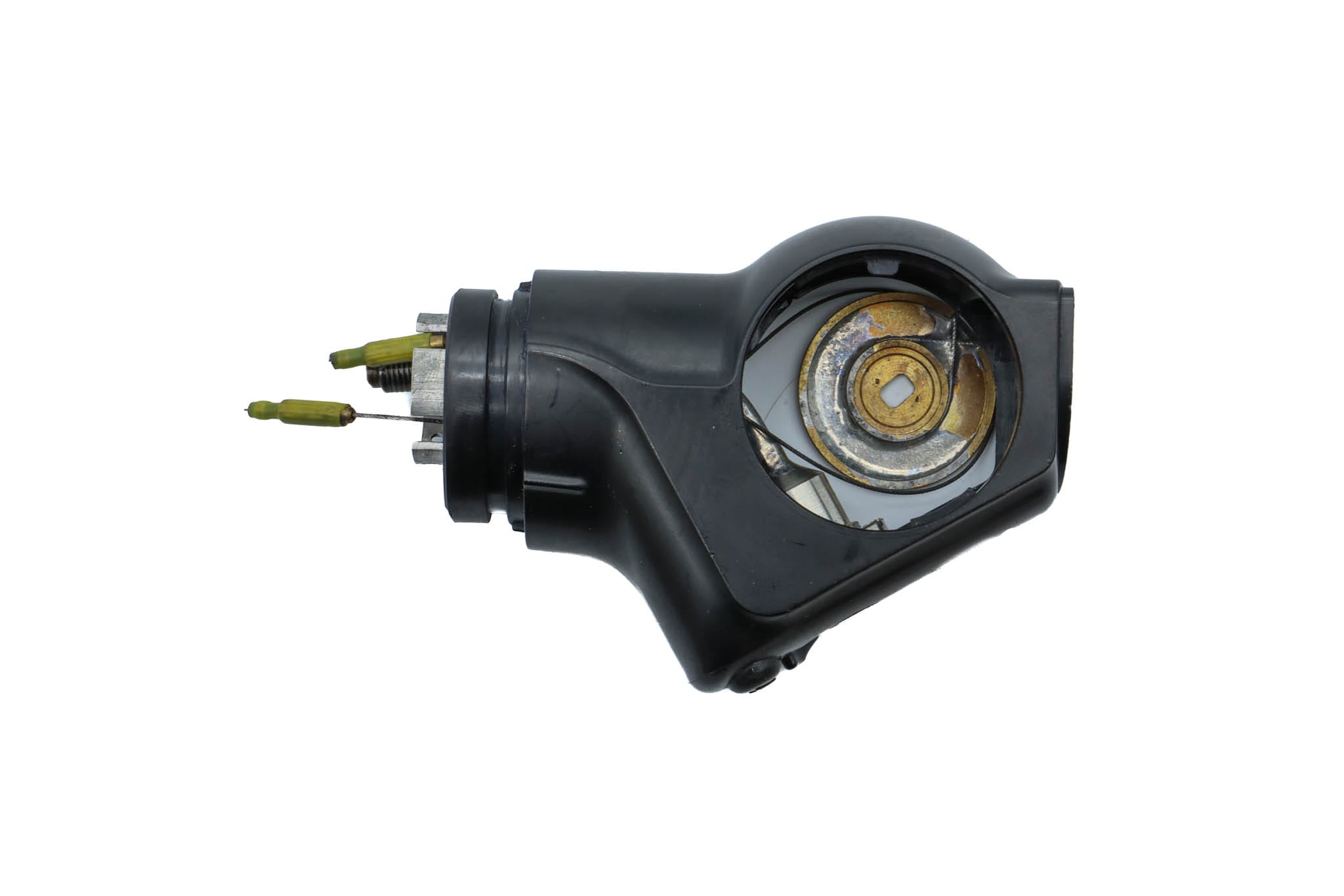 Small Diameter Basic Upper Control Body Assembly. This part includes the Upper Control Body Housing, metal Eyepiece Mount (for Applicable Models), metal Port, Buttons/ Button Piston/Button Board (for Video Models), metal Brackets (for Applicable Models) and Angulation Disk. This part does not Include the Angulation Drum.