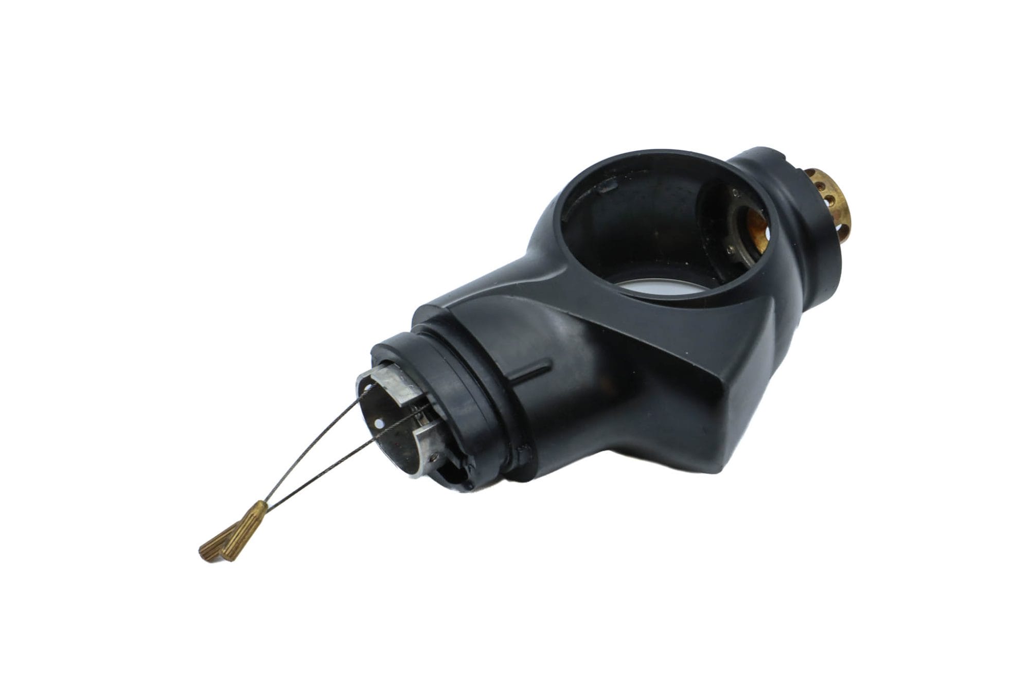 Small Diameter Basic Upper Control Body Assembly. This part includes the Upper Control Body Housing, metal Eyepiece Mount (for Applicable Models), metal Port, Buttons/ Button Piston/Button Board (for Video Models), metal Brackets (for Applicable Models) and Angulation Disk. This part does not Include the Angulation Drum.