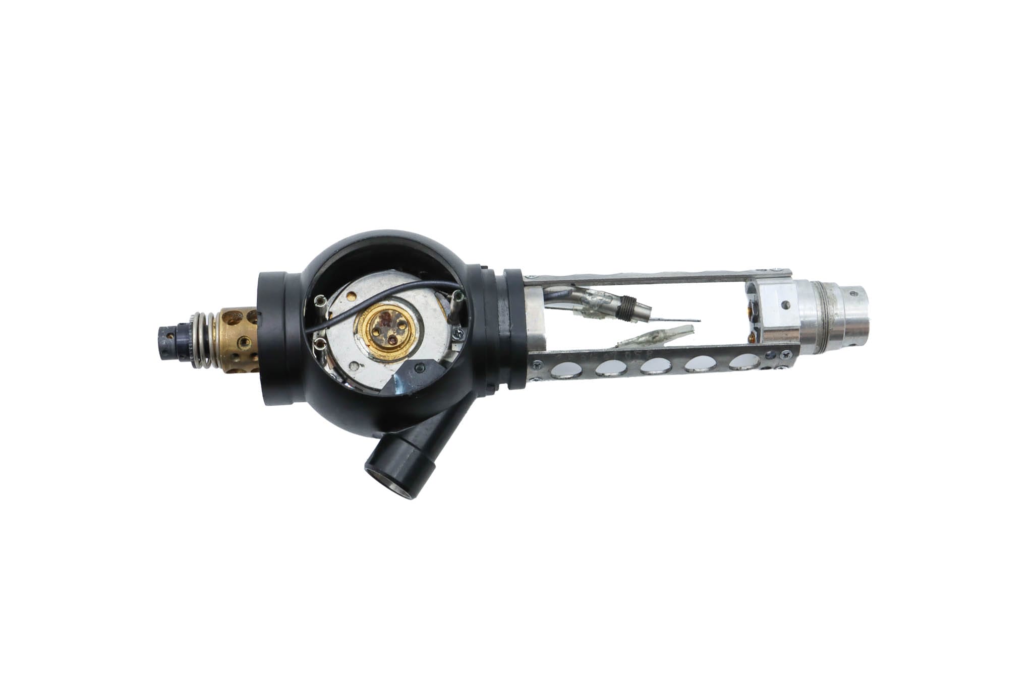 Small Diameter Basic Upper Control Body Assembly. This part includes the Upper Control Body Housing, metal Eyepiece Mount (for Applicable Models), metal Port, Buttons/ Button Piston/Button Board (for Video Models), metal Brackets (for Applicable Models) and Angulation Disk. This part does not Include the Angulation Drum.