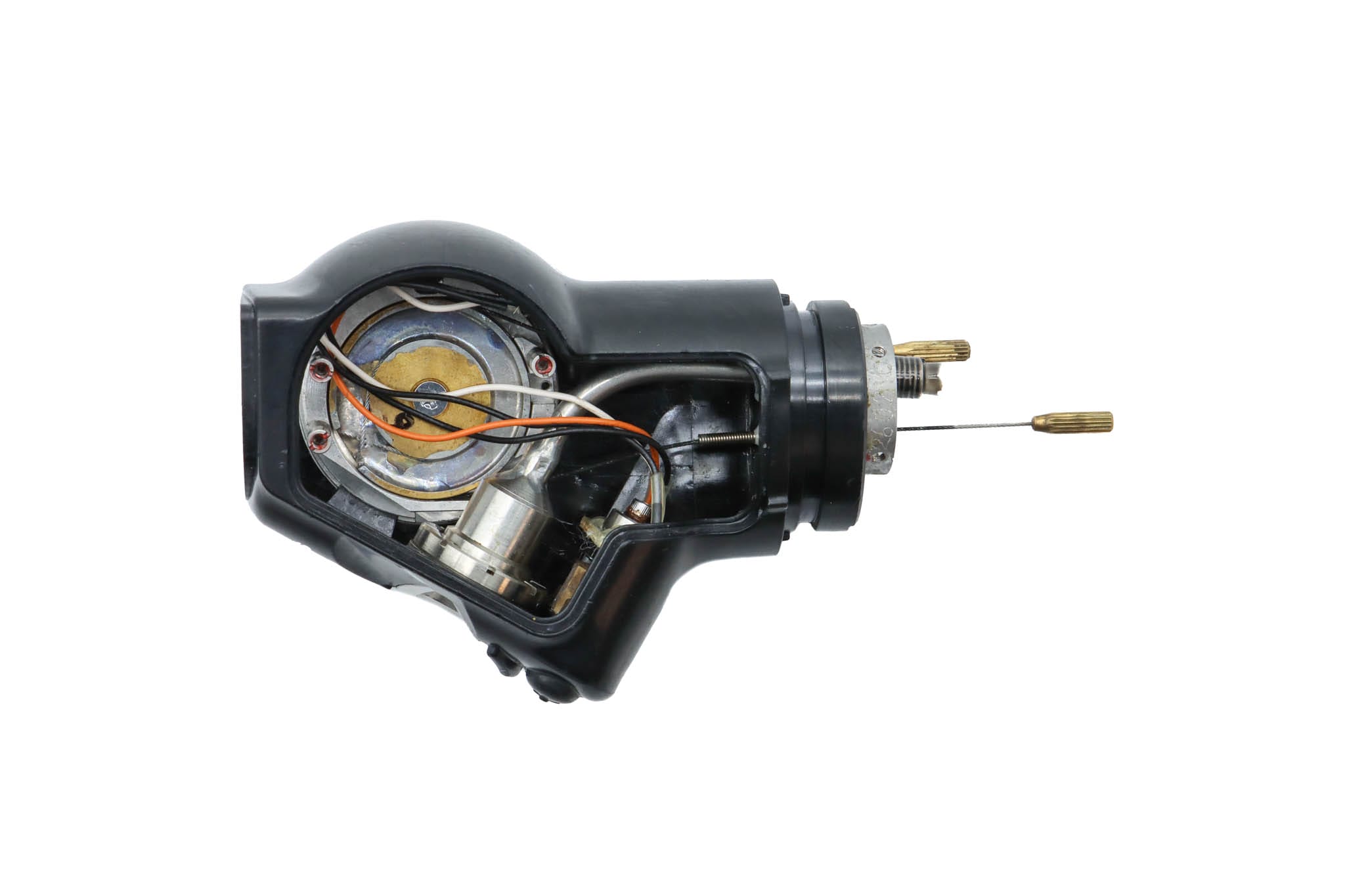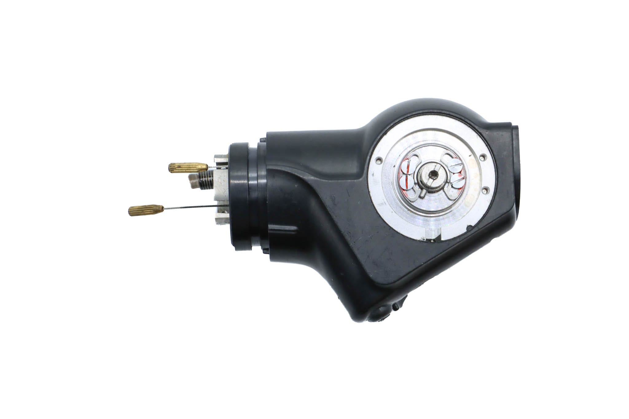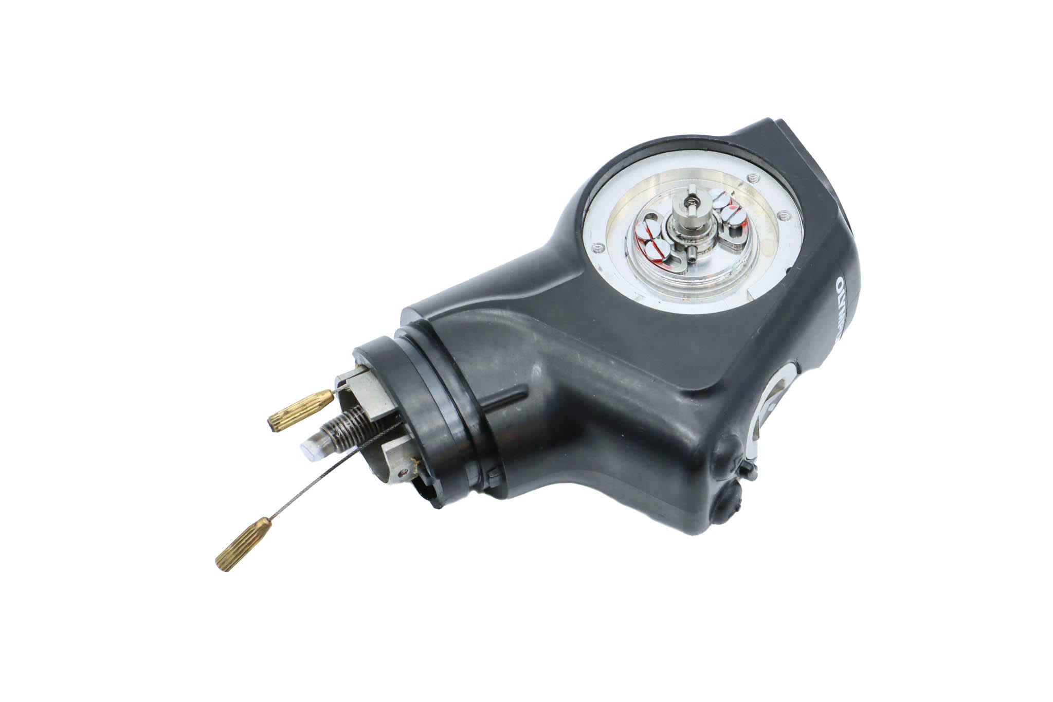 Small Diameter Complete Upper Control Body Assembly. This part includes the Upper Control Body Housing, metal Eyepiece Mount (for Applicable Models), metal Port, Buttons/ Button Piston/Button Board (for Video Models), metal Brackets (for Applicable Models) and Angulation Disk. This part includes the Angulation Drum.