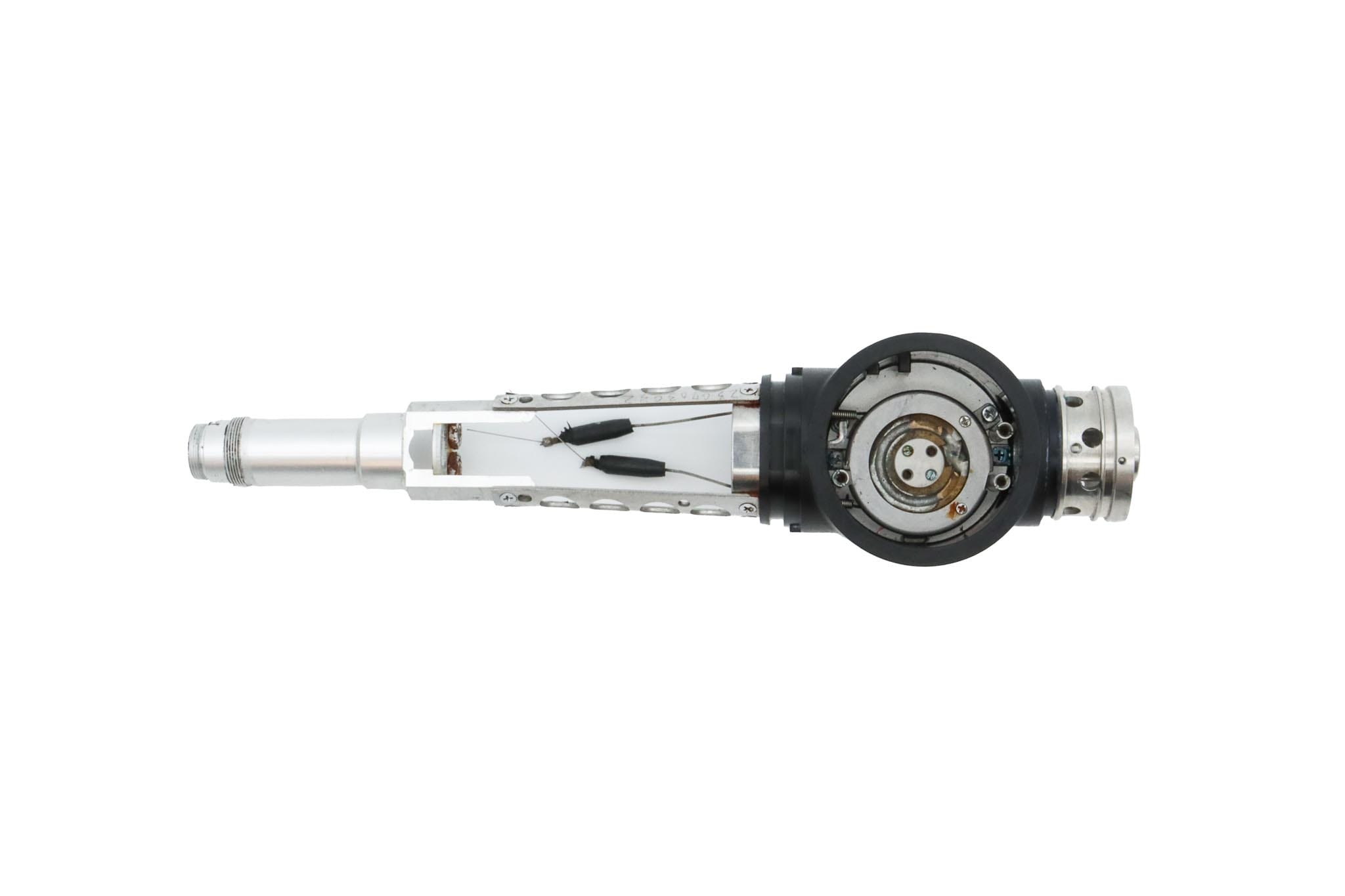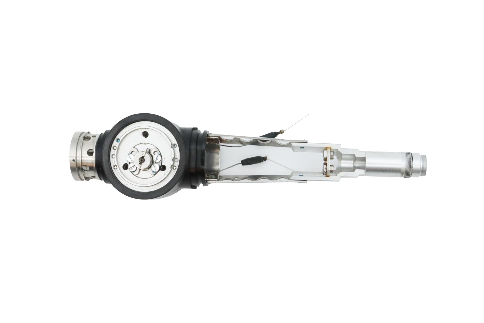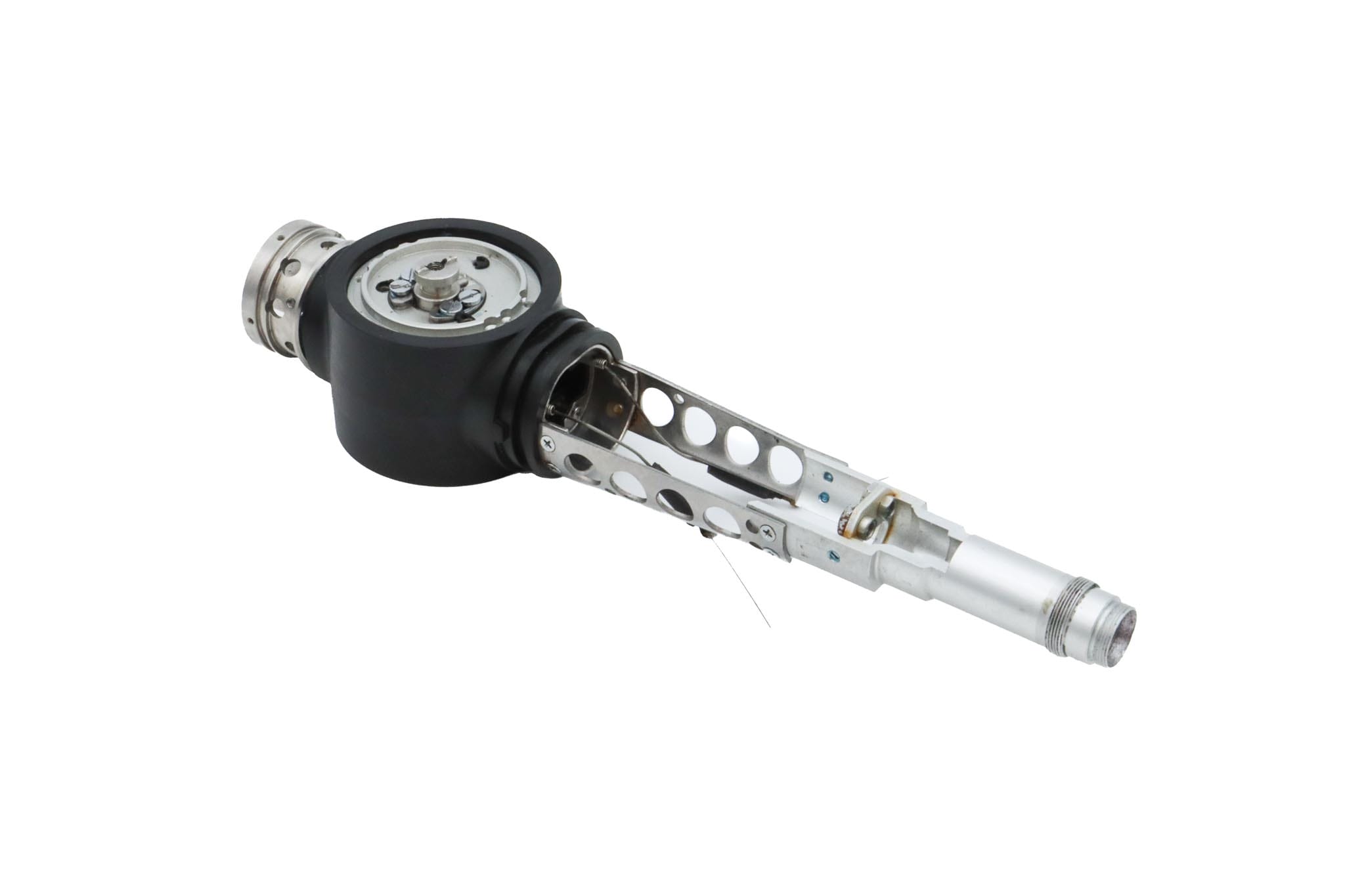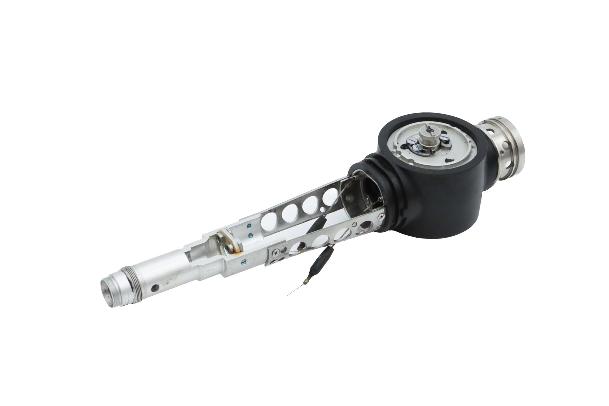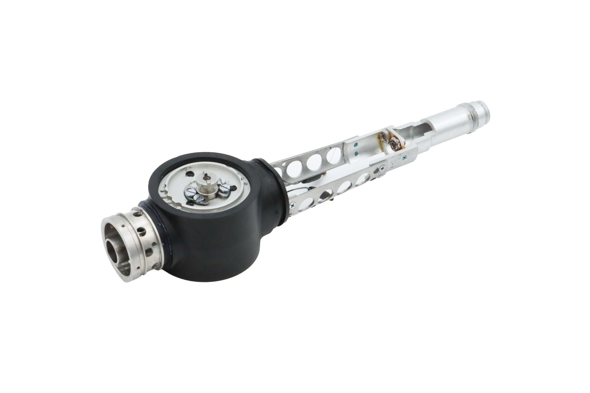 Small Diameter Basic Upper Control Body Assembly. This part includes the Upper Control Body Housing, metal Eyepiece Mount (for Applicable Models), metal Port, Buttons/ Button Piston/Button Board (for Video Models), metal Brackets (for Applicable Models) and Angulation Disk. This part does not Include the Angulation Drum.