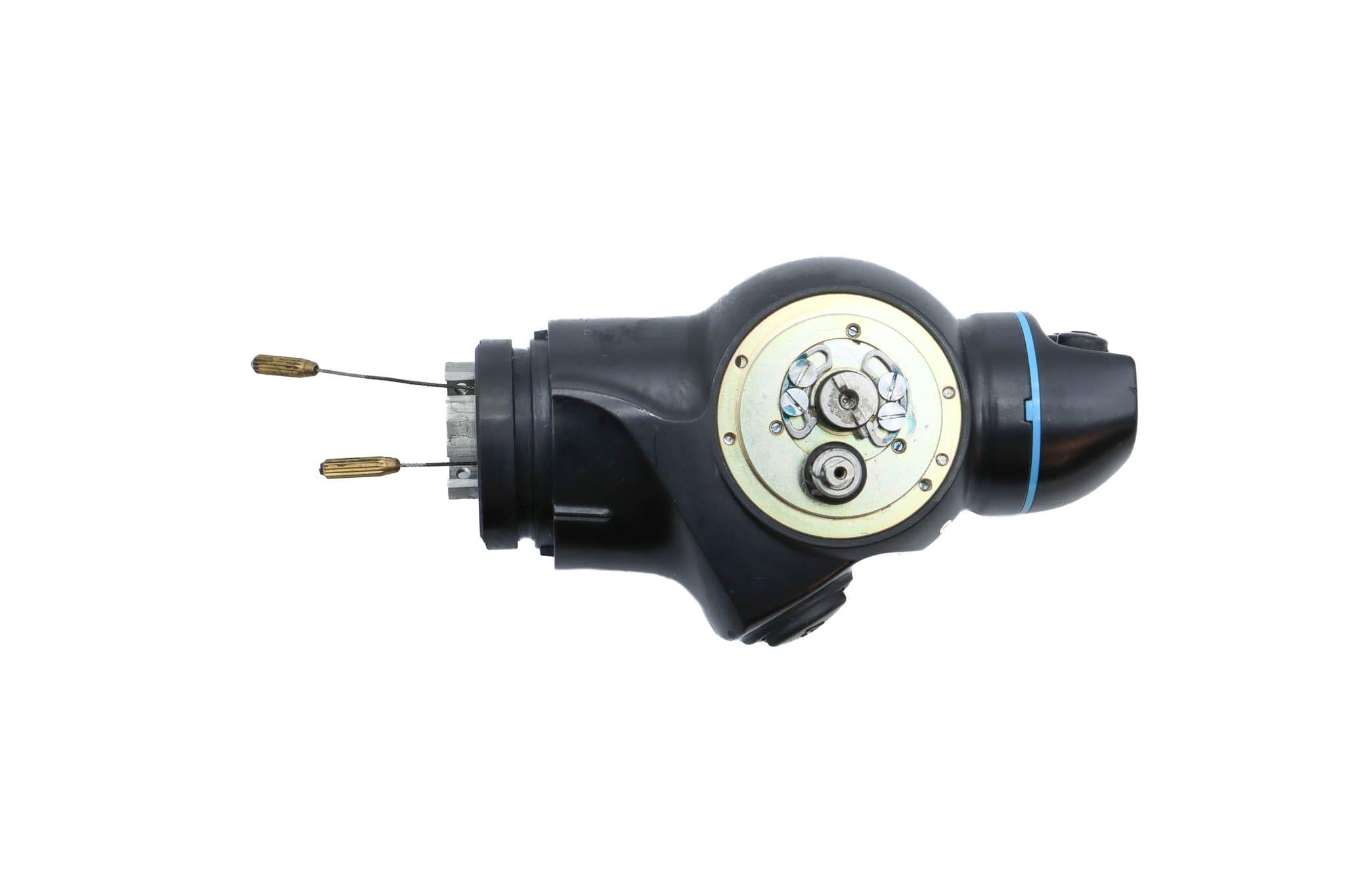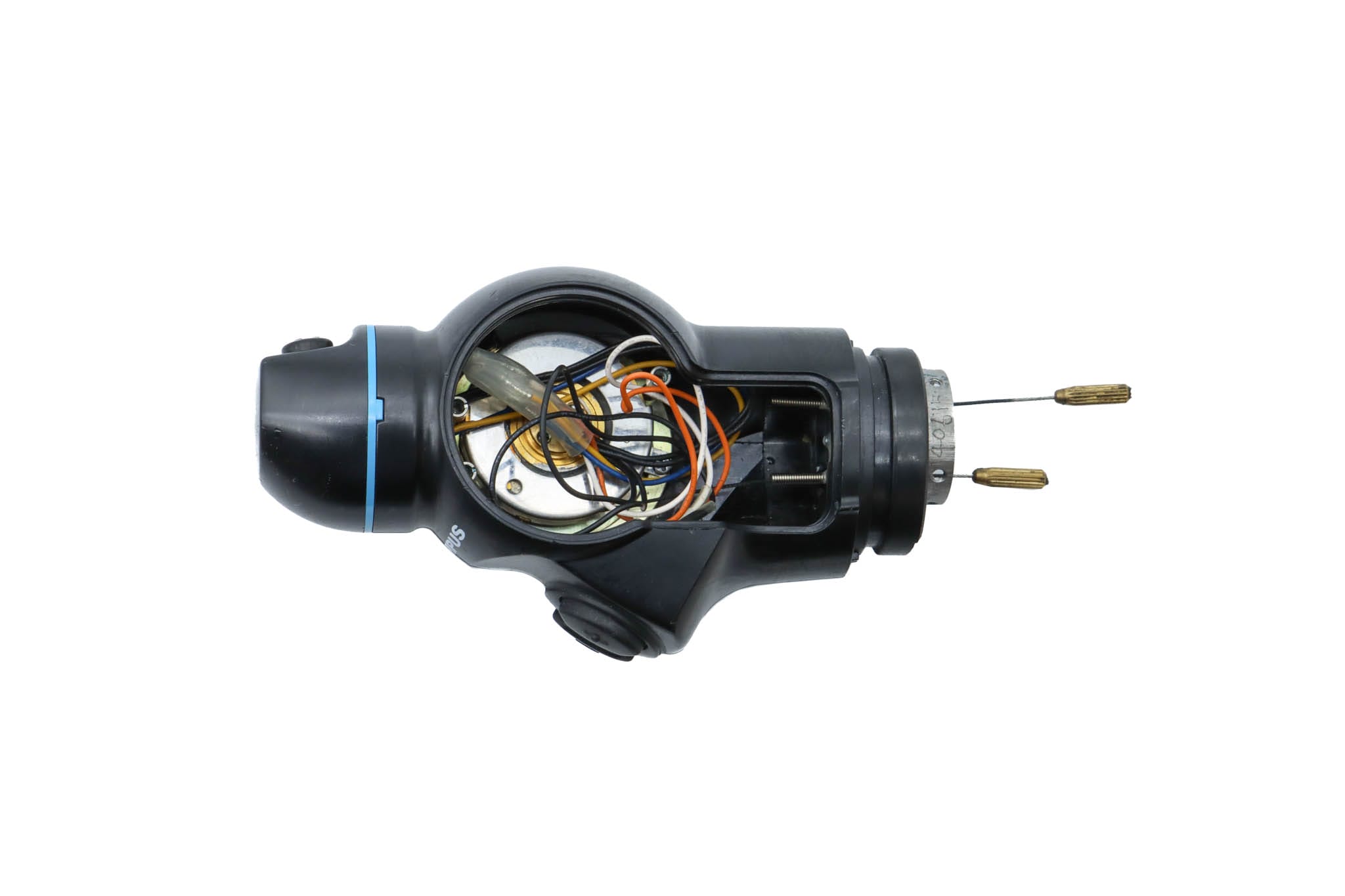Small Diameter Basic Upper Control Body Assembly. This part includes the Upper Control Body Housing, metal Eyepiece Mount (for Applicable Models), metal Port, Buttons/ Button Piston/Button Board (for Video Models), metal Brackets (for Applicable Models) and Angulation Disk. This part does not Include the Angulation Drum.