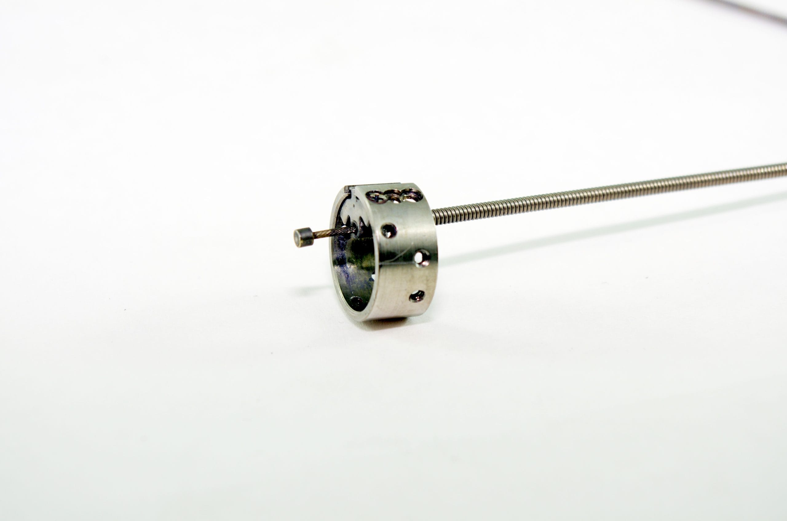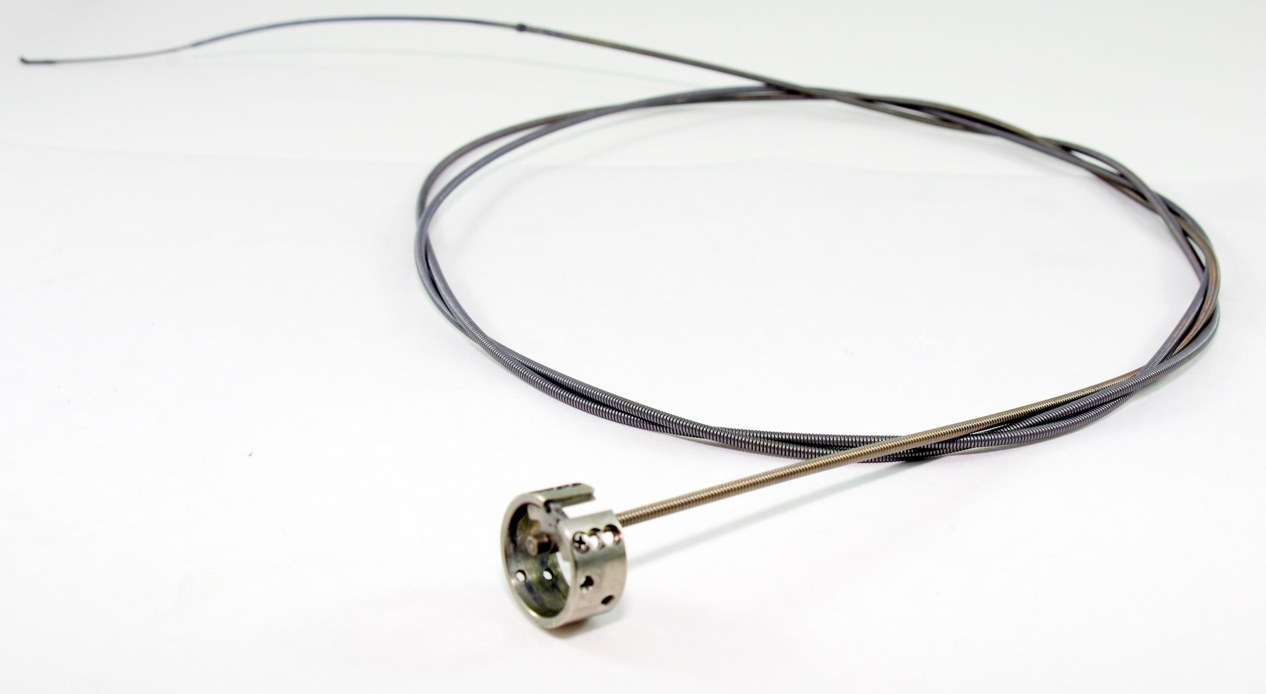 Variable Stiffness Coil. for Variable Stiffness Endoscopes. This style has a ring that is closed. This Coil fits onto the Mouth of the Coil Pipe Assembly at the Distal End of the Insertion Tube (Using Distal End Stopper) and Runs Down the Insertion Tube. It mounts onto the Adjustable Stiffness Knob Mechanism to allow Variable Stiffness of the Insertion Tube. This part includes the Coil, Distal End Stopper, Coil Wire U (Stopper), and Movable Ring (Attaches to Rear Cylinder).